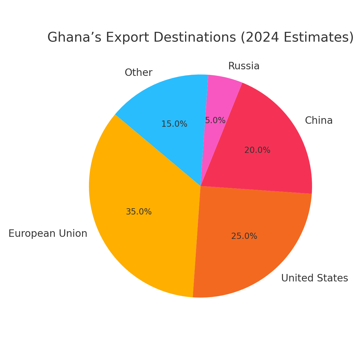 Ghana’s GDP relies on exports to the EU and the U.S. (cocoa, gold, oil)